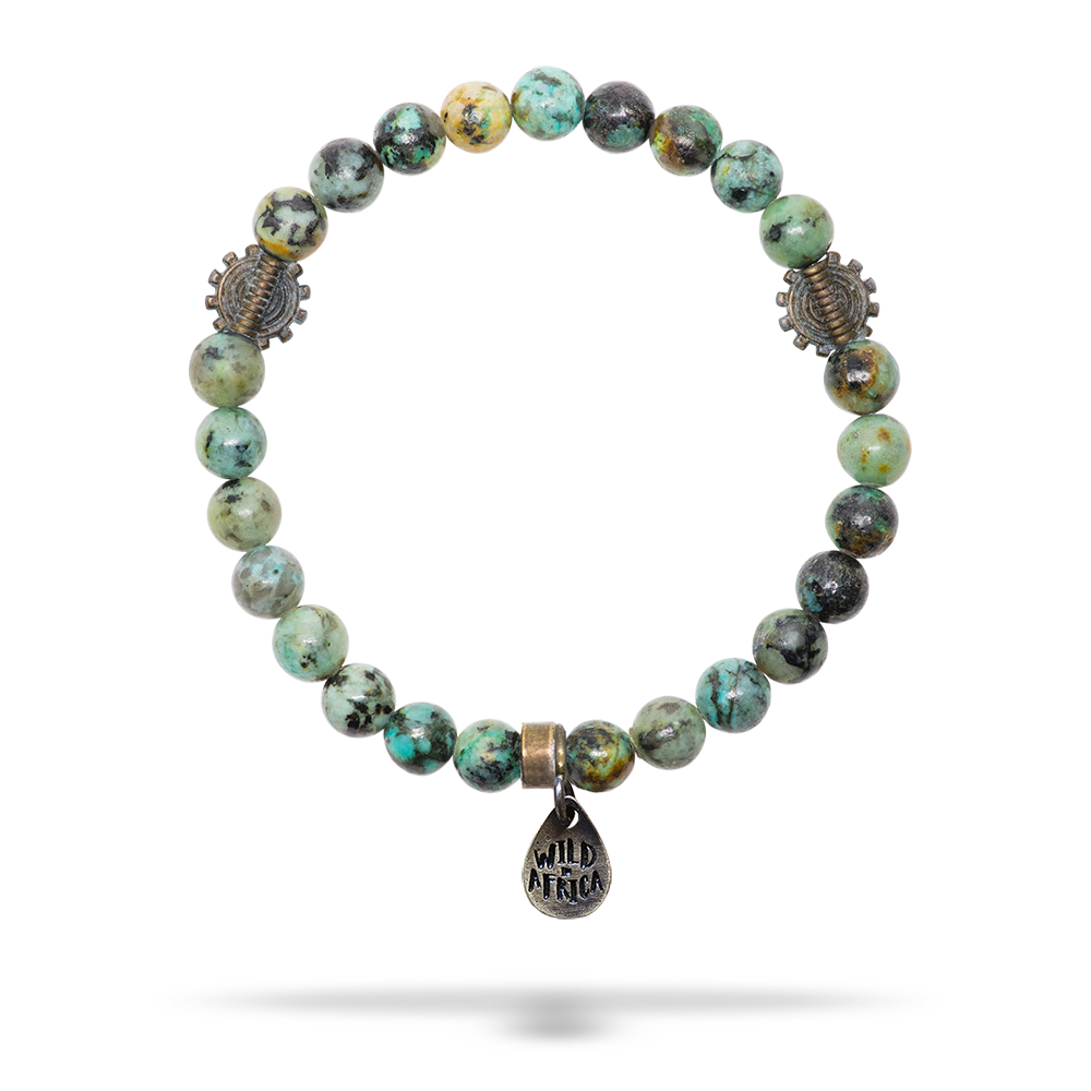 The earthy green-blue hue of African Turquoise is contrasted with ebony and cocoa flecks, creating an organic look that is perfect for everyday wear. Believed to be the ‘Stone of Evolution’, African Turquoise helps you to evolve, encouraging growth and change. Encourages growth, transformation, and new opportunities.