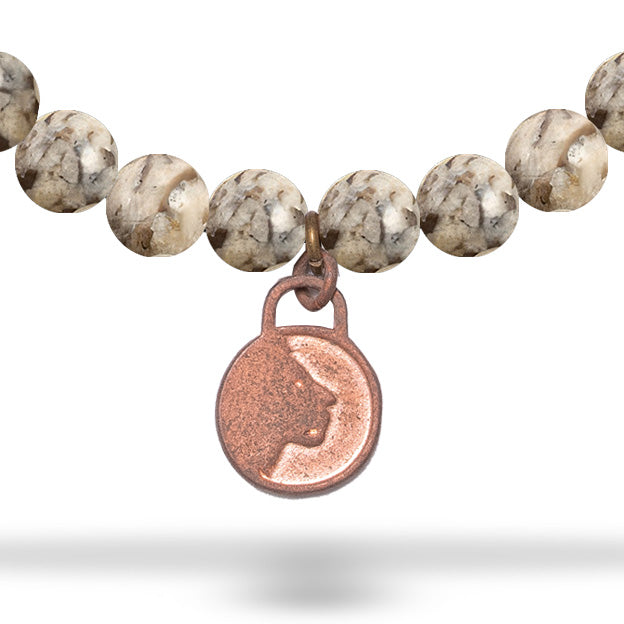 Designed with Picture Jasper beads, each stone is carefully chosen for its resemblance to the colouring of lions and hyenas, capturing the rugged beauty of Africa’s savannah. Anchoring the bracelet is a bold, rustic copper lion pendant — a symbol of strength, courage, and a deep commitment to preserving Africa’s wild heritage, and to the tireless efforts of removing poachers' snares to protect these magnificent animals.
