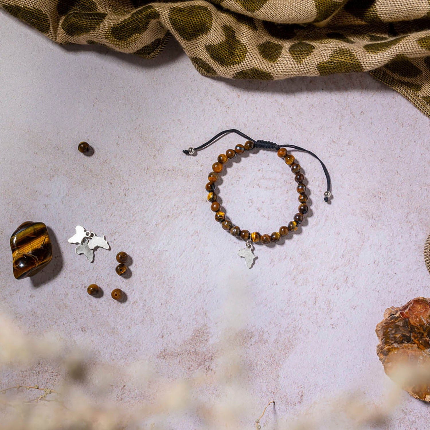 South African Tiger’s Eye beaded adjustable bracelet with a gorgeous steel Africa charm.